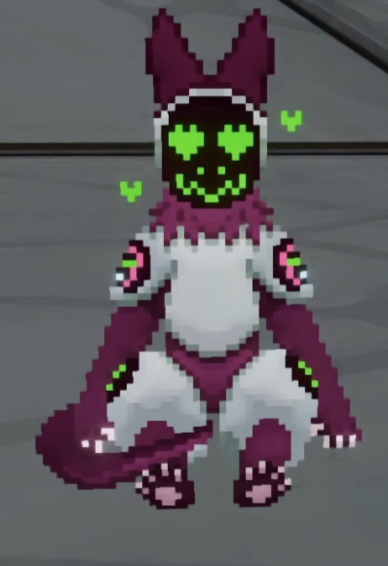 +100 hand drawn 96x96px frames creating Running cycle, Sitting and jump animation, 3 different visemes and 8 facial expressions including òwó úwù and <3!