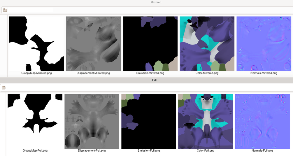 The animations are made with VRCSDK3 and the avatar has couple simple expressions such as Angry, Blep, Sad, Squint and combinations of them. You can also adjust the Gloop color with a Hue slider.